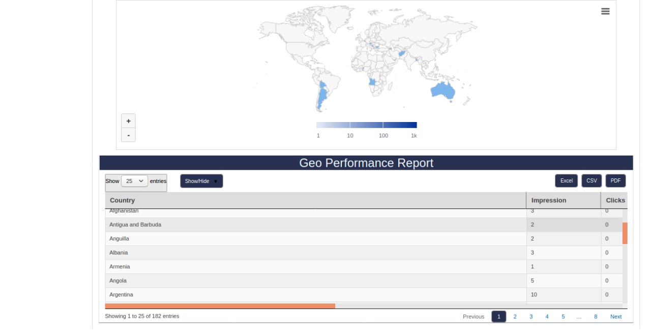 Google map shows the right location of the customer and by identifying the location the advertiser can able to identify the high-value marketplace. The plugin will display the right location of the customer along with the count of impressions, clicks, and CTR percentage.