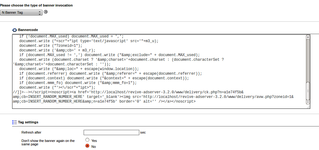 After entering refresh time click refresh button and take invocation code of “N Banner Tag” type and Place where you want to display.