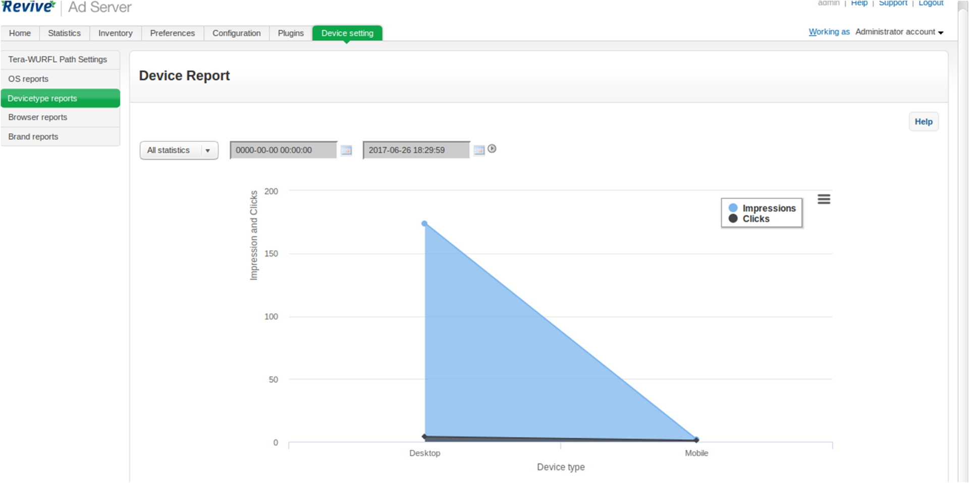 The Device reporting for display and mobile plugin for Revive Adserver generates reports taking into account the