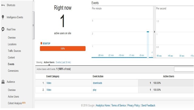 If a publisher wants to track category as video and action as play and video name as funny.mp4, the plugin will allow the user to find the tracking information and assists to verify the details in Google analytic event tracking section. The page view can be verified in Google analytic login.