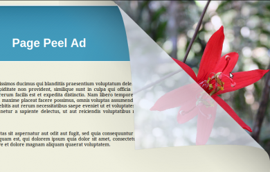 The plugin supports both custom and IAB standard sizes and the ads will have size format of 100X100 for 400X400 mouse hover. The page will start peeling when a mouse hovers over the peeling area and when a user stops it, the page will return back to its original position.