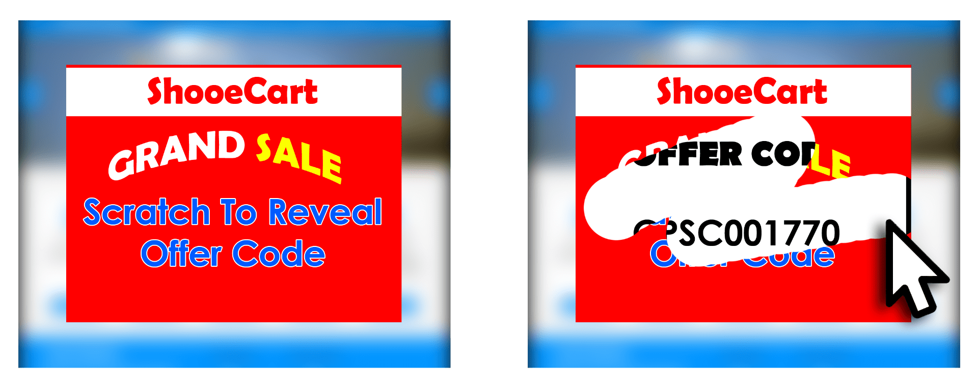 Scratch off ads is nothing but two banner ads stacked on top of the other, displayed at the same place at the same time on a page. One is the scratch me banner and the other banner is the one that contains the coupon or promo code. Only the banner at the top will be visible initially to the user.