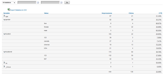 For the above example, a report contains variable name, value, impression, click, and CTR. of the particular location. And likewise, the user can track the other variables with different location name.