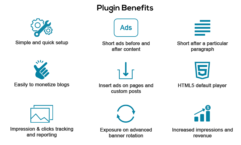 The plugin is embedded with three best ad formats available in the industry; Advanced N Banner Rotation, Interstital Image and HTML5 video creative. Along with the these formats other additional formats can be added with the plugin based on requirement.